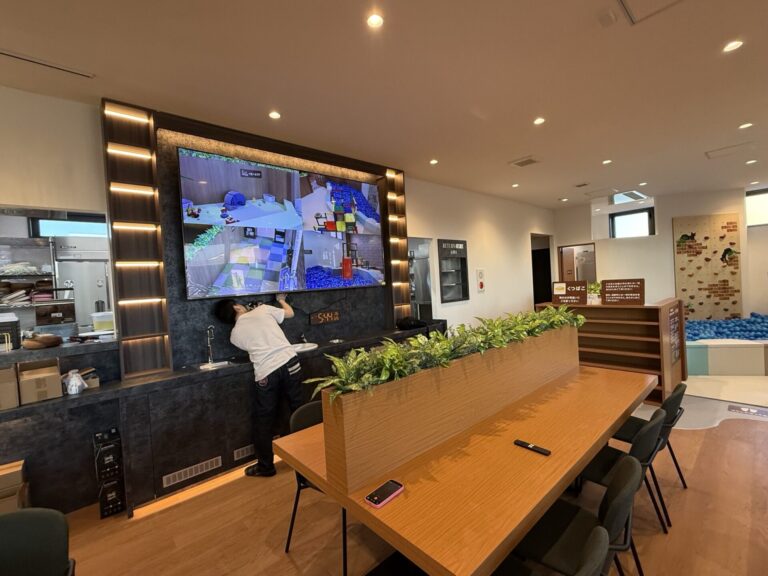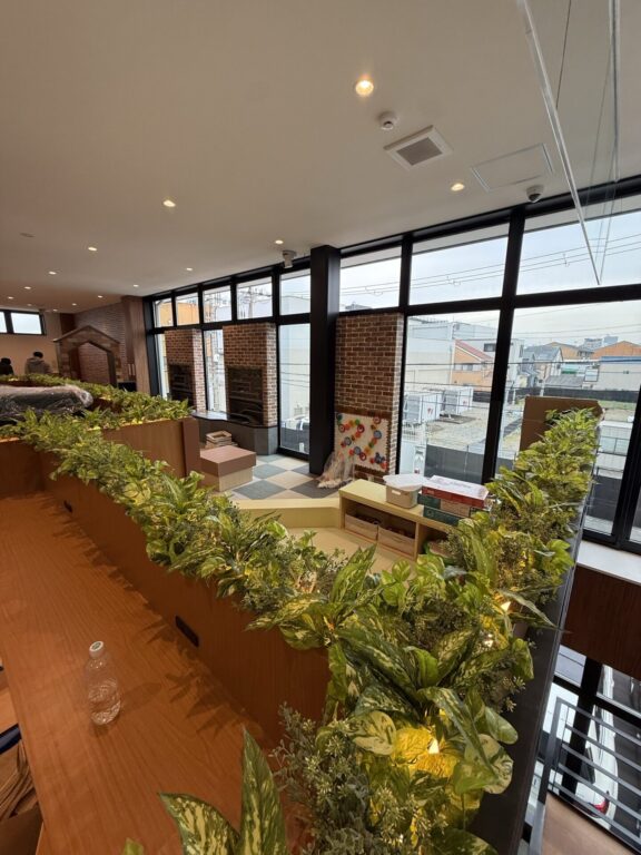 新店OPENに伴い、飲食スペースとキッズスペースの間仕切りにグリーンを入れさせていただきました。