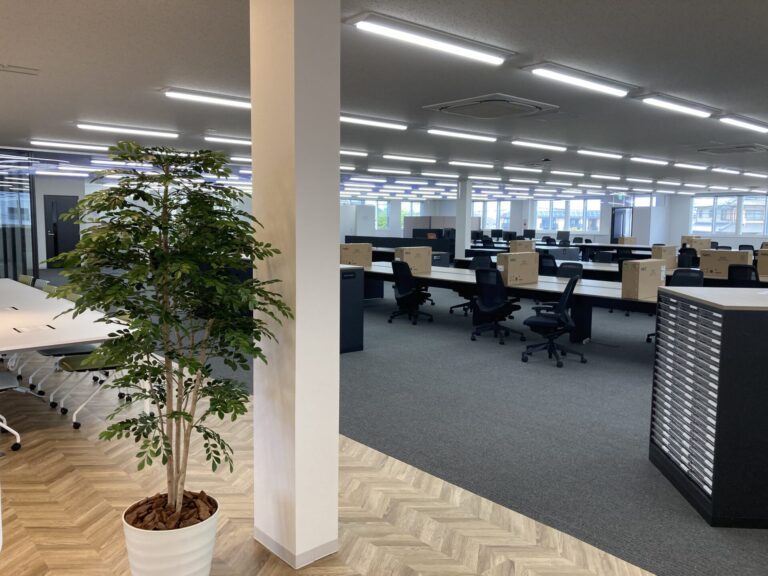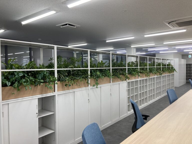 商談スペースとオフィスとの間の書庫の上に、目隠しと潤いの意味もありプランター入りのグリーンをご採用いただきました。