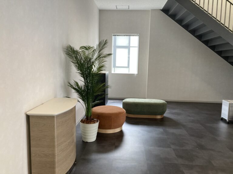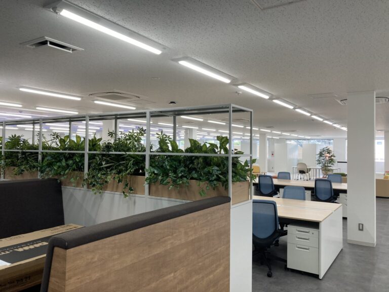商談スペースとオフィスとの目隠し&癒しを兼ねてフェイクグリーン植栽